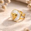 La bague rotative Améline incarne la douceur et l’élégance avec son cœur doré délicatement posé sur un médaillon nacré lumineux. Symbole d’amour et de féminité, elle capte la lumière avec subtilité pour sublimer chaque geste. Son anneau rotatif apporte une touche ludique et apaisante, faisant de ce bijou un indispensable à la fois tendance et intemporel.