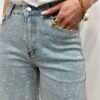 Ce bermuda en jean revisité attire tous les regards grâce à ses strass délicatement répartis qui apportent une touche lumineuse et tendance. Sa coupe moderne et confortable sublime la silhouette tout en offrant une grande liberté de mouvement. Le denim clair associé aux détails scintillants lui donne un style à la fois chic et audacieux. Une pièce originale qui apporte instantanément du caractère au look.