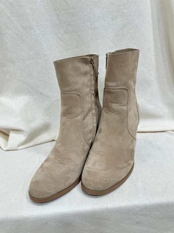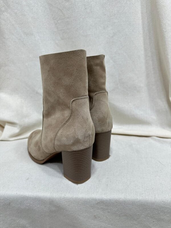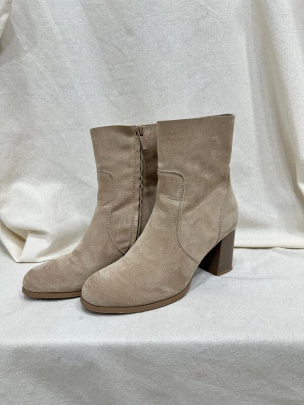 Les bottines Clara incarnent l’élégance intemporelle avec leur ligne épurée et leur coloris beige doux. Confectionnées dans une matière effet suédé, elles offrent un style chic et facile à associer avec toutes vos tenues. Leur talon stable allonge la silhouette tout en assurant un confort optimal au quotidien.