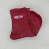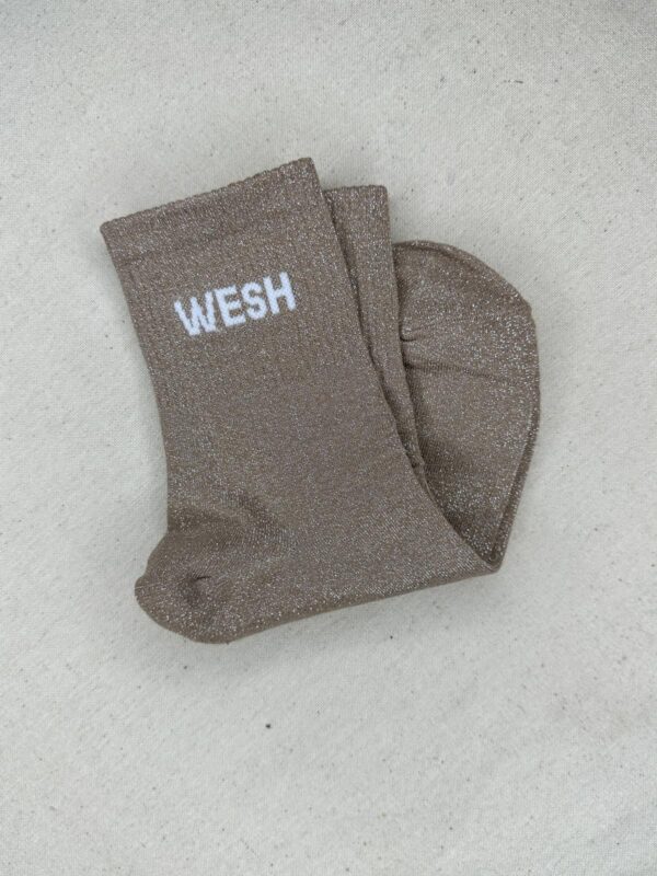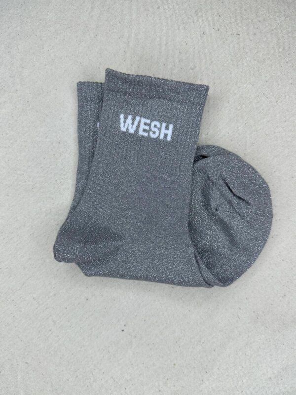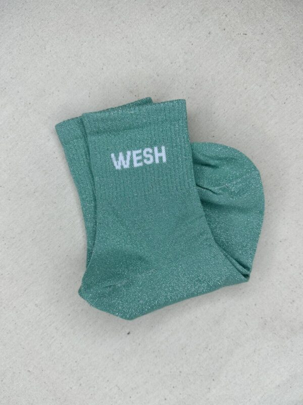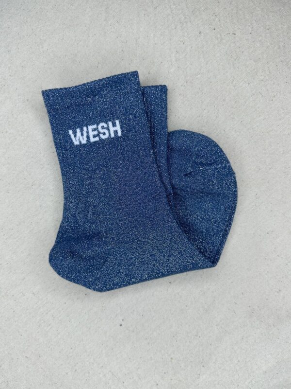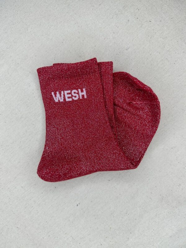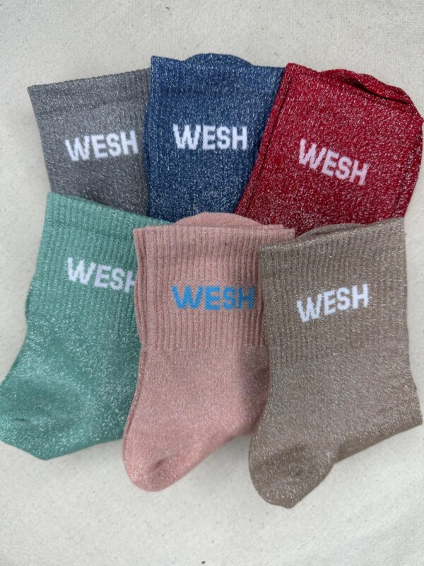 Les chaussettes Wesh apportent une touche fun et décalée à vos looks du quotidien. Confectionnées dans une maille scintillante douce et extensible, elles illuminent vos tenues avec leurs coloris variés et leur message audacieux WESH. Parfaites pour twister une paire de baskets et affirmer votre style avec une pointe d’humour.