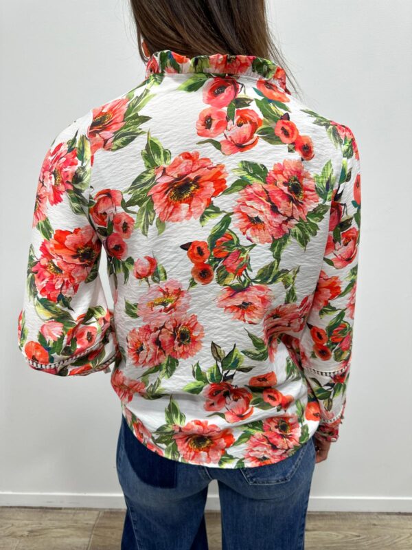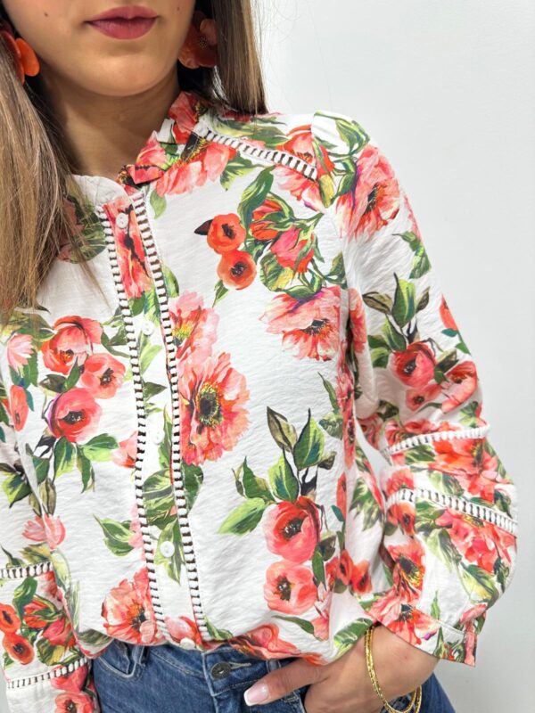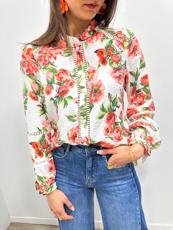 Cette blouse florale illumine instantanément la silhouette avec son imprimé éclatant et féminin. Son tissu léger et texturé apporte un tombé délicat tandis que les détails ajourés ajoutent une touche raffinée et élégante. Les manches légèrement volumineuses structurent la pièce tout en gardant une allure fluide. Une blouse pleine de charme qui apporte fraîcheur et caractère au dressing.