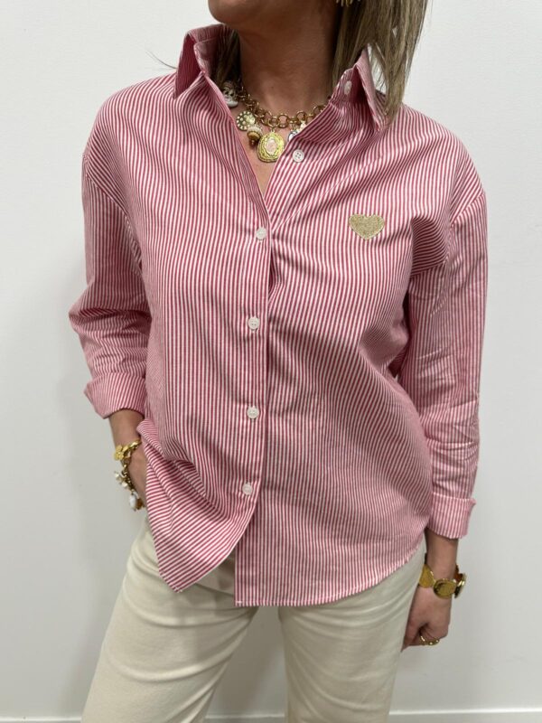 Craquez pour cette chemise rayée pleine de fraîcheur et de caractère. Son motif à fines rayures apporte une touche intemporelle, tandis que le petit cœur brodé sur la poitrine signe une allure tendance et féminine. Facile à porter au quotidien, pour un look casual chic parfaitement maîtrisé. Un basique revisité qu’on adore avoir dans son dressing
