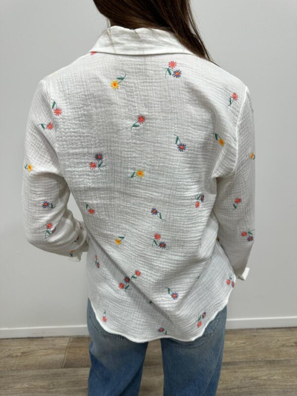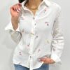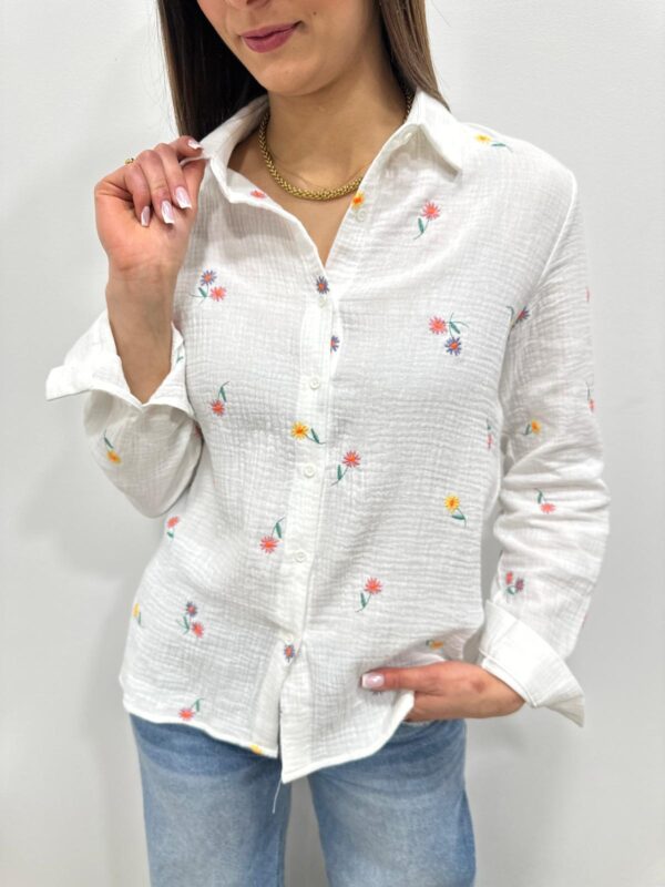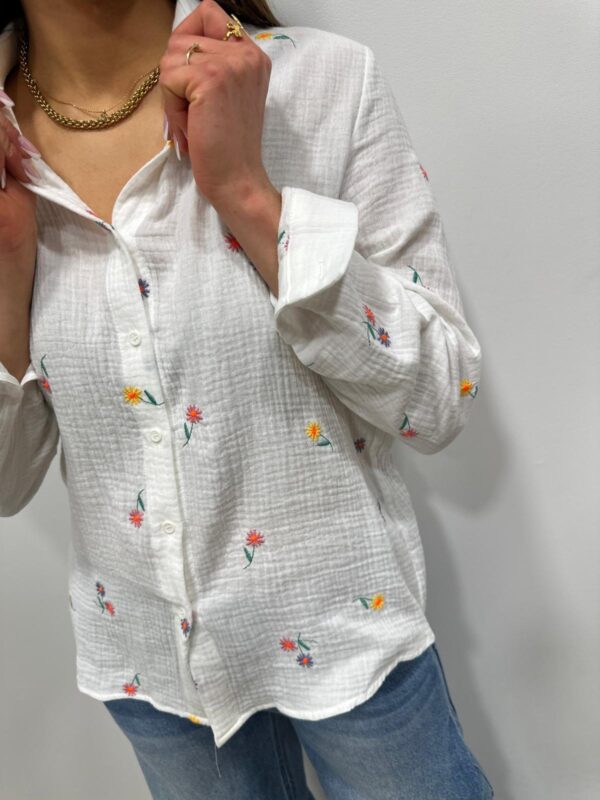 Craquez pour cette jolie chemise blanche ornée de délicates petites fleurs brodées qui apportent une touche fraîche et printanière à votre tenue. Sa matière légère et texturée la rend très agréable à porter au quotidien. Facile à associer, elle deviendra rapidement un indispensable de votre dressing 🌼