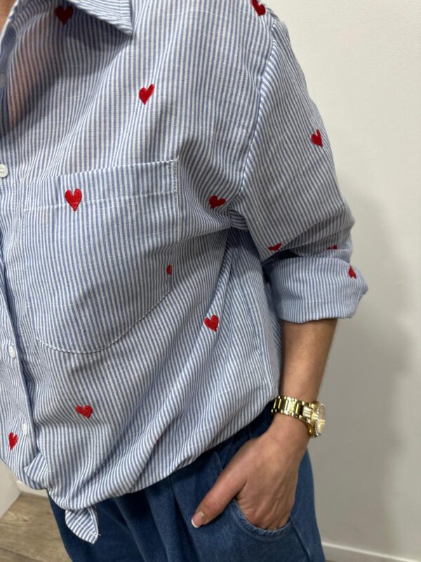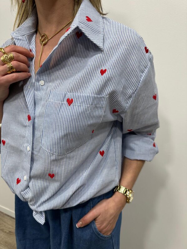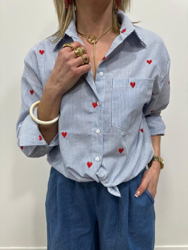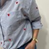 Craquez pour cette chemise à rayures revisitée avec une touche d’originalité ❤️ Les petits cœurs brodés apportent une note romantique et pétillante à ce modèle intemporel. Facile à porter au quotidien, elle se noue à la taille pour un look décontracté ou se porte rentrée pour une silhouette plus structurée. Une pièce coup de cœur qui dynamise instantanément votre tenue.