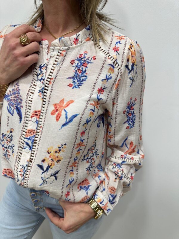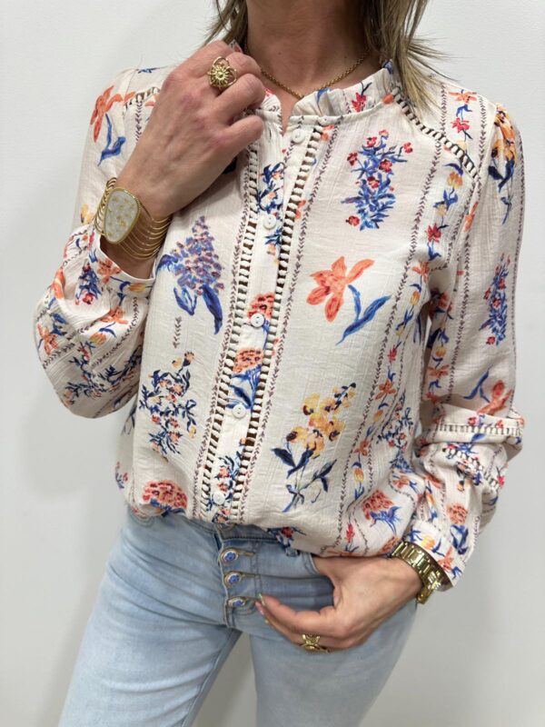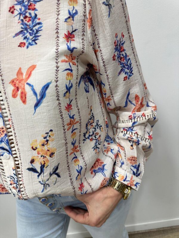Cette chemise à l’esprit bohème séduit par son délicat imprimé floral aux couleurs douces et lumineuses. Ses détails ajourés et sa coupe fluide apportent beaucoup de féminité et d’élégance. Facile à porter au quotidien, elle se marie parfaitement avec un jean pour un look chic et naturel 🌸