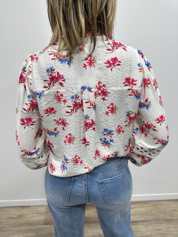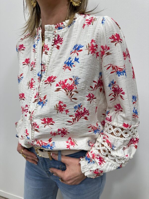 Laissez-vous séduire par cette chemise au charme printanier Son imprimé floral délicat dans des tons rouge et bleutés apporte fraîcheur et élégance à votre tenue. Les détails en dentelle et les finitions raffinées lui donnent une touche romantique parfaite pour la saison. Facile à associer pour un look chic et naturel.