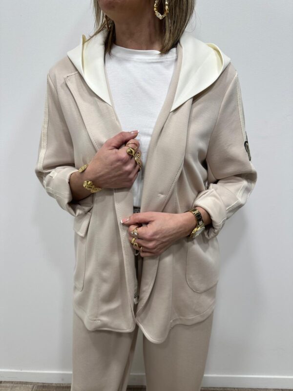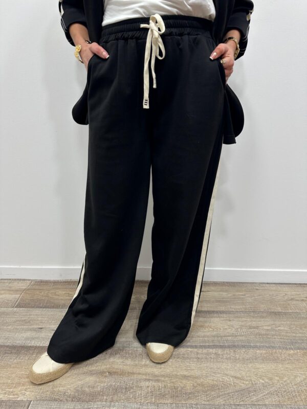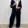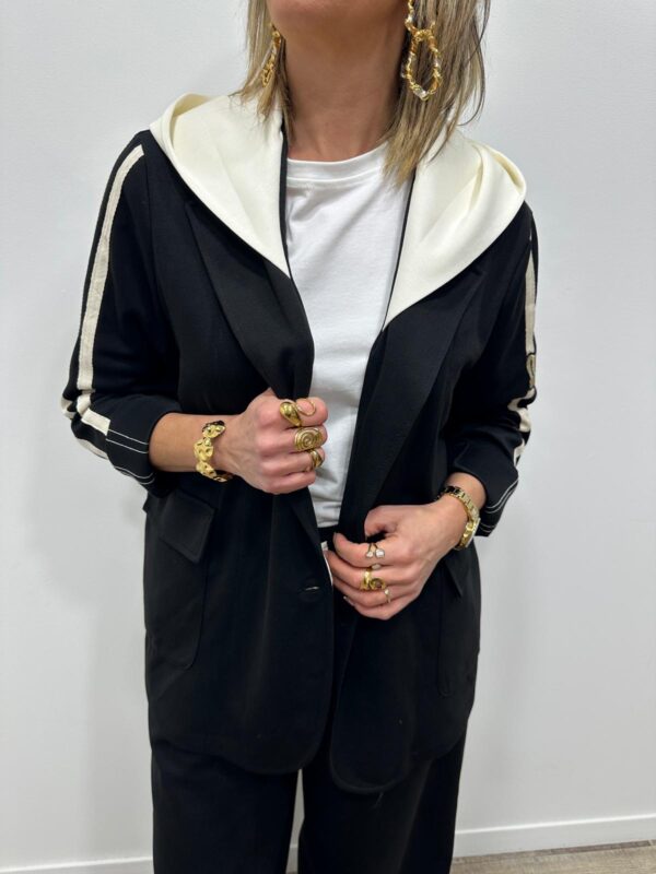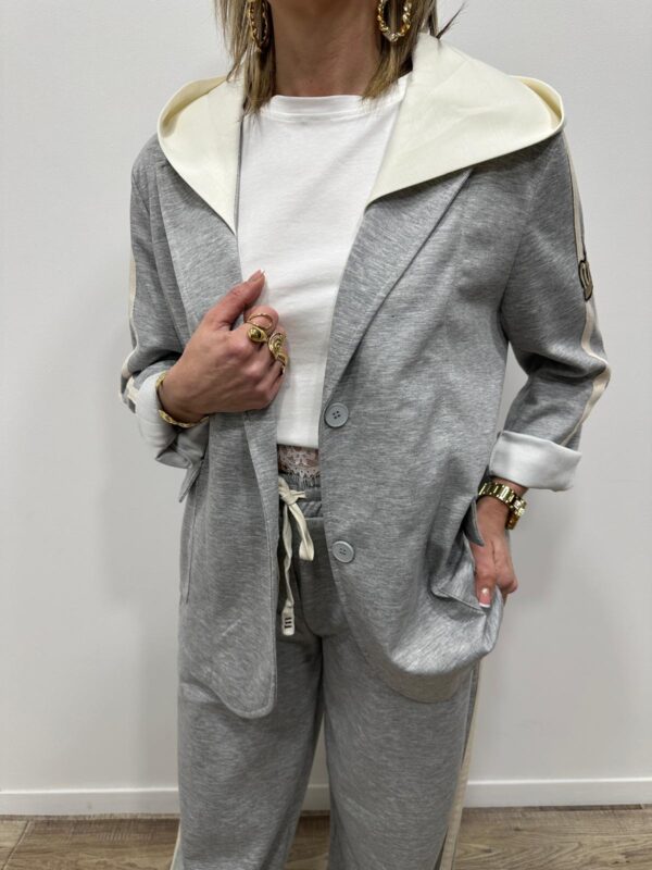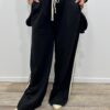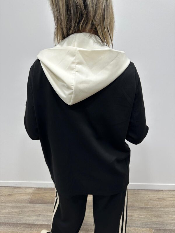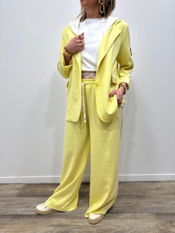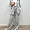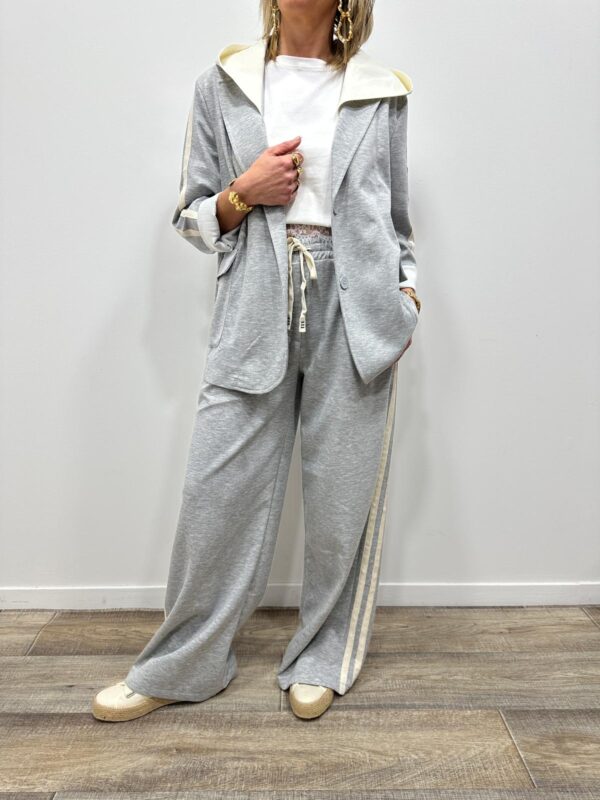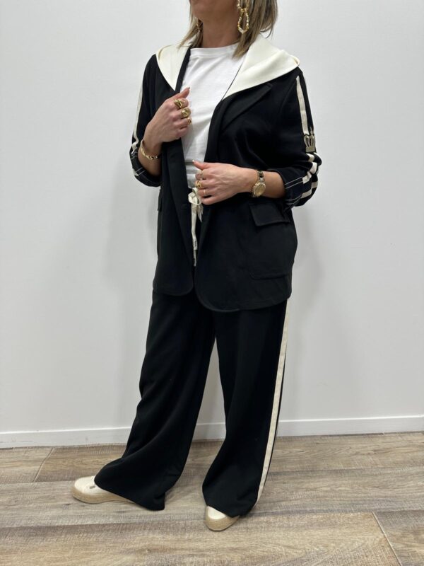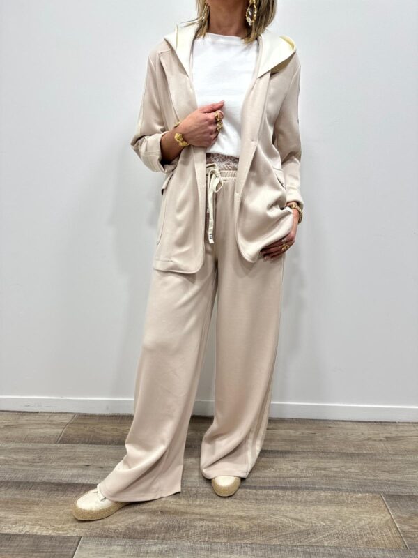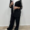 Adoptez un look chic et confortable avec cet ensemble au style casual élégant. Composé d’une veste à capuche et d’un pantalon large fluide, il allie parfaitement modernité et aisance. On adore ses détails contrastants qui apportent une touche sportive tendance, idéale pour un look du quotidien à la fois stylé et confortable.