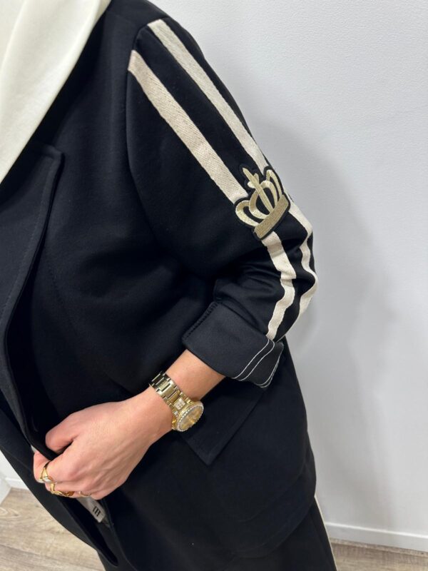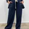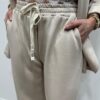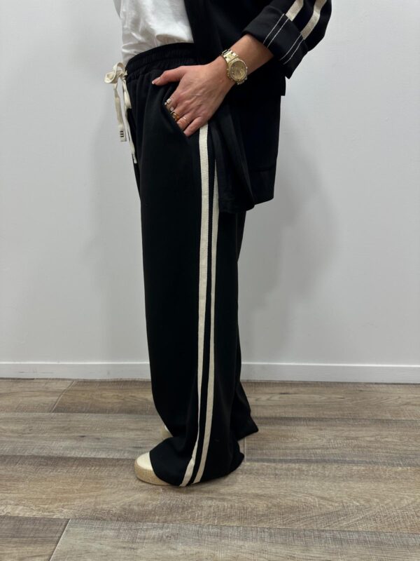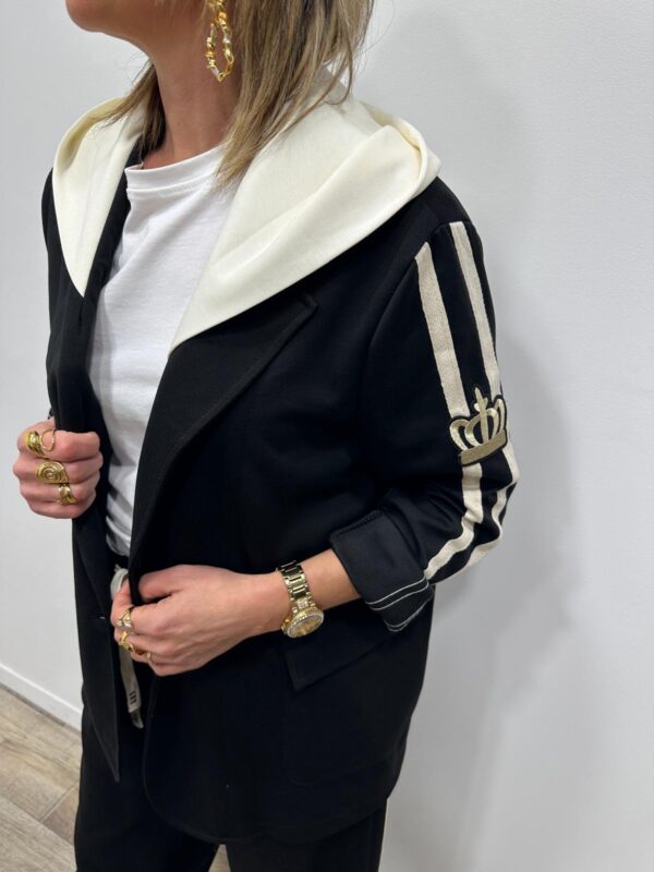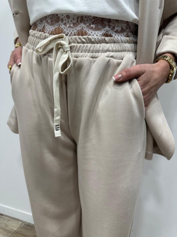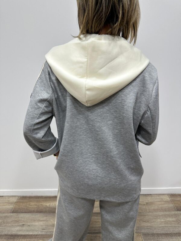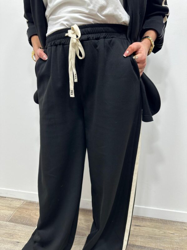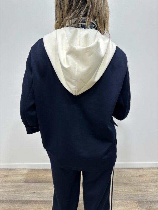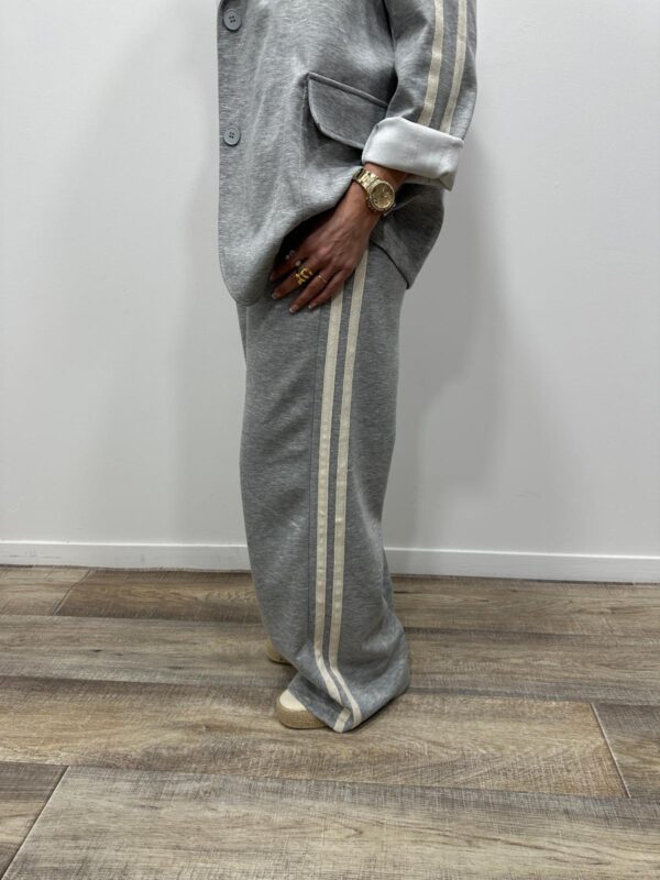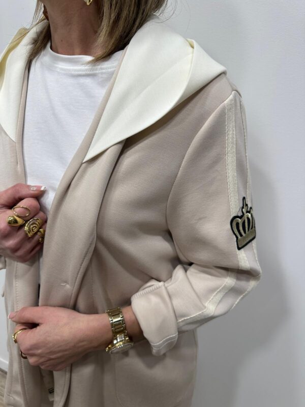 Adoptez un look chic et confortable avec cet ensemble au style casual élégant. Composé d’une veste à capuche et d’un pantalon large fluide, il allie parfaitement modernité et aisance. On adore ses détails contrastants qui apportent une touche sportive tendance, idéale pour un look du quotidien à la fois stylé et confortable.