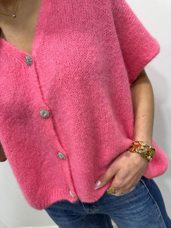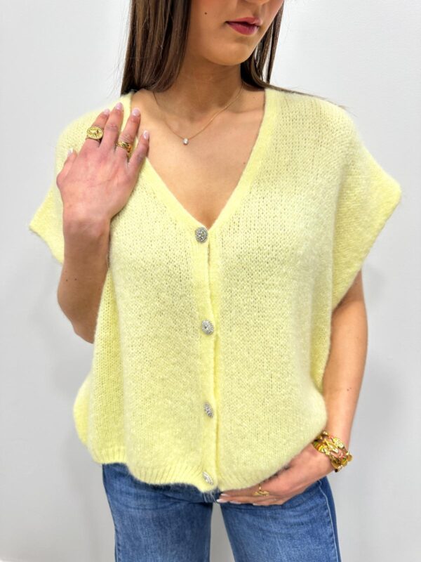 Ce gilet tout doux séduit par sa couleur lumineuse et sa maille délicatement duveteuse. Son décolleté en V et ses jolis boutons bijoux apportent une touche élégante et féminine au modèle. Sa coupe ample assure un tombé fluide et confortable. Une pièce à la fois chic et cosy qui illumine instantanément la silhouette.