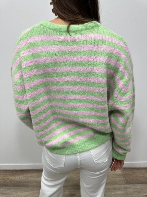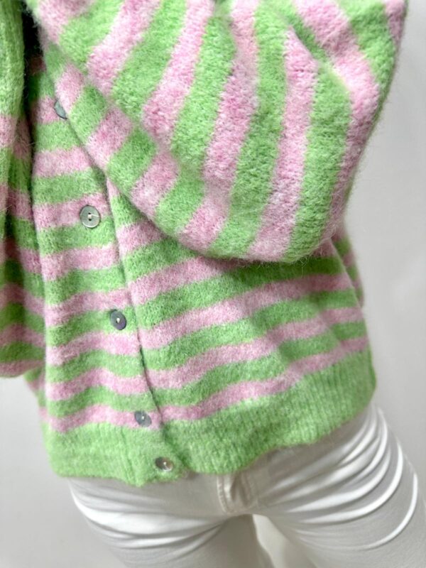 • Gilet en maille rayée vert et rose
