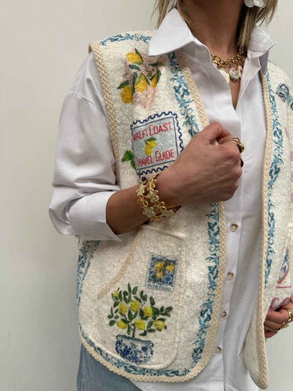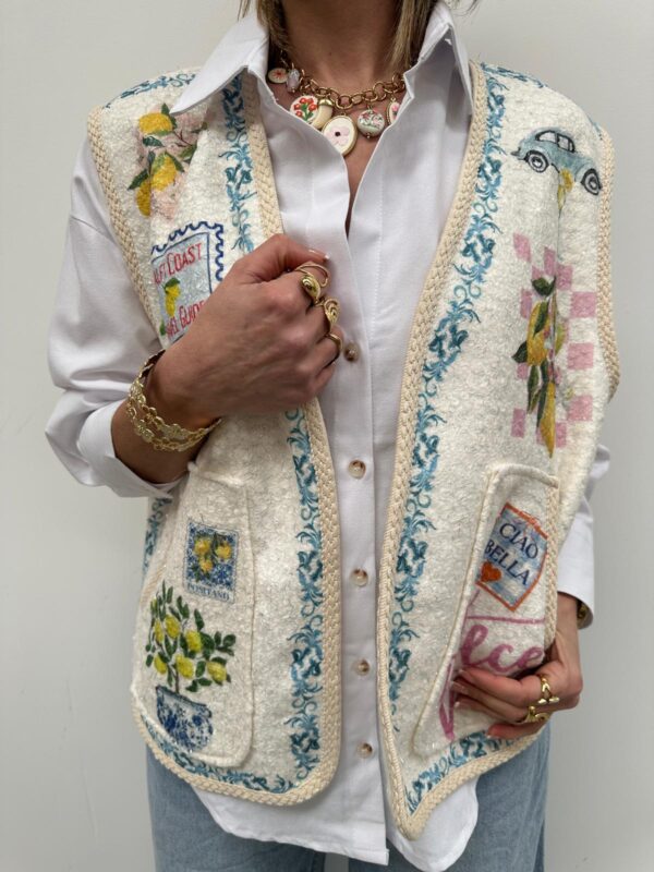 Apportez une touche d’originalité et de bonne humeur à vos looks avec ce gilet sans manches au style arty et coloré Sa maille texturée et ses imprimés inspirés apportent un esprit bohème chic ultra tendance. Facile à superposer sur une chemise ou un pull fin, il devient la pièce forte de votre tenue.