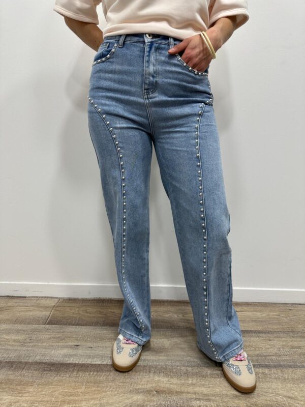 Le jean qui attire tous les regards 💎✨ Avec ses détails de perles délicatement disposées le long des poches et des jambes, ce jean apporte une touche glamour et ultra tendance à un basique du dressing. Sa coupe flatteuse allonge la silhouette et sublime les formes tout en restant confortable au quotidien. Parfait pour un look chic et moderne.