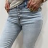 Le jean parfait du quotidien 💙 On adore sa coupe féminine et confortable, idéale pour sublimer la silhouette tout en restant ultra agréable à porter. Son denim clair apporte une touche fraîche et lumineuse à vos looks, et ses boutons fantaisie ajoutent ce petit détail original qui fait toute la différence ✨