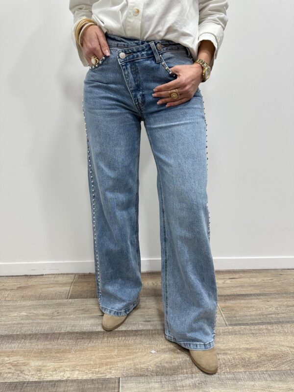 Craquez pour ce jean wide leg à l’allure résolument tendance, une pièce forte qui allie confort et élégance. Sa taille haute flatteuse souligne la silhouette tandis que sa coupe large apporte une touche moderne et ultra stylée. Le détail qui fait toute la différence ? Les clous métallisés le long des côtés, qui ajoutent une note rock chic et structurent joliment la jambe. Ce jean devient rapidement un indispensable pour un look affirmé et actuel 💙✨
