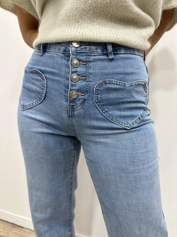 Le jean coup de cœur au détail ultra féminin 💙 On adore sa coupe flatteuse et son joli denim clair facile à associer. Son atout charme ? Les poches avant en forme de cœur qui apportent une touche originale et tendance 💕Avec sa taille haute et sa ligne légèrement évasée, il allonge la silhouette et met en valeur la taille. Parfait pour un look stylé au quotidien ✨