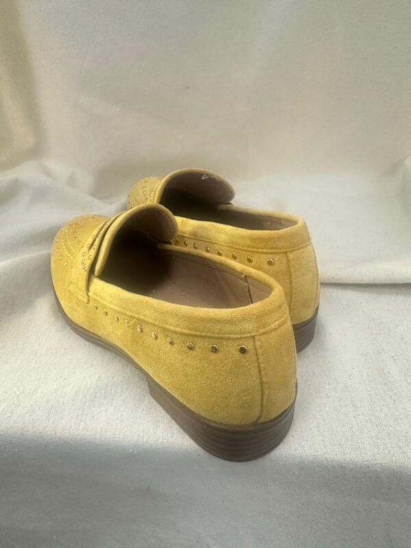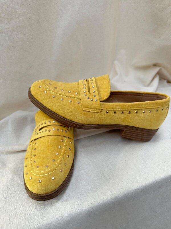 Les mocassins Dakota incarnent l’élégance moderne avec une touche audacieuse. Confectionnés dans une matière effet suédé, ils sont sublimés par de délicats clous dorés qui apportent caractère et raffinement. Leur coupe intemporelle et leur semelle fine en font un indispensable du vestiaire chic, facile à porter aussi bien avec un jean qu’avec un pantalon plus habillé. Un modèle sophistiqué qui allie confort et style.