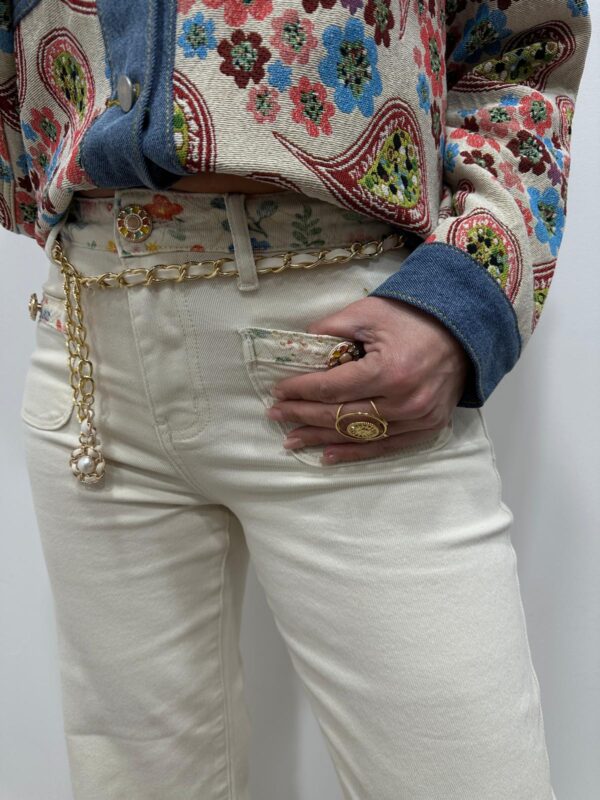 On adore ses poches plaquées ornées de boutons bijoux et sa chaîne dorée décorative à la taille, qui font toute la différence et donnent instantanément du caractère à la tenue. Facile à associer pour un style chic-décontracté assumé. ✨