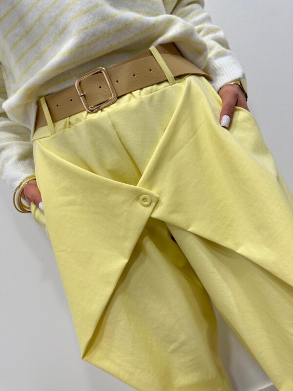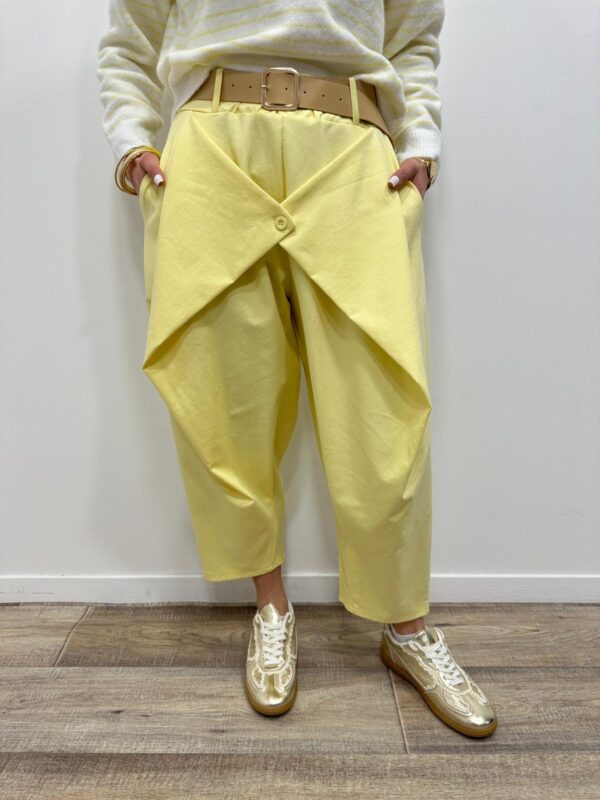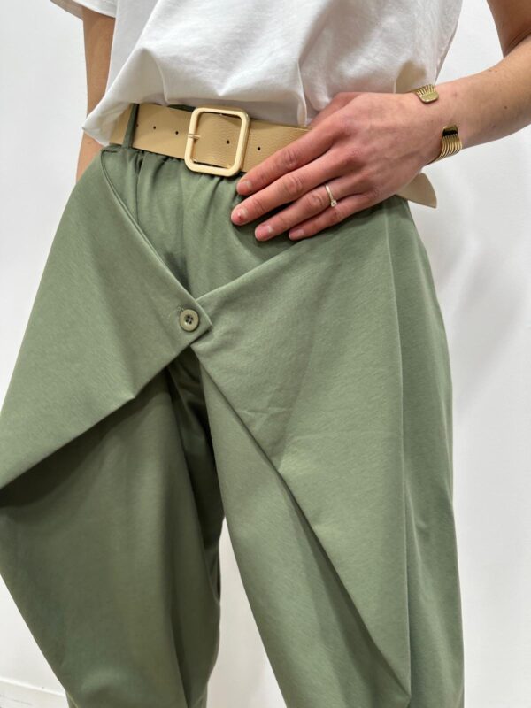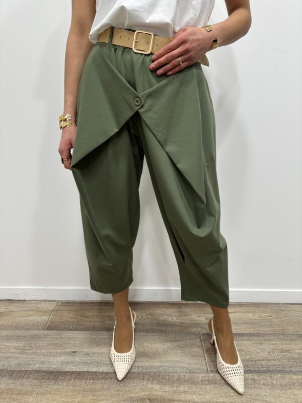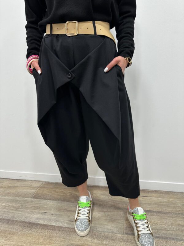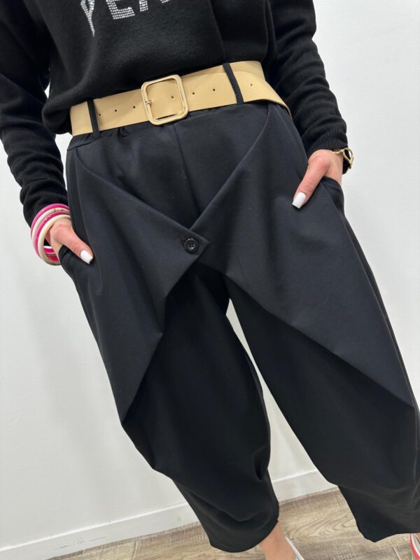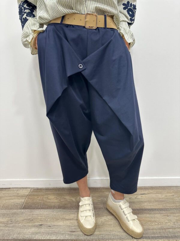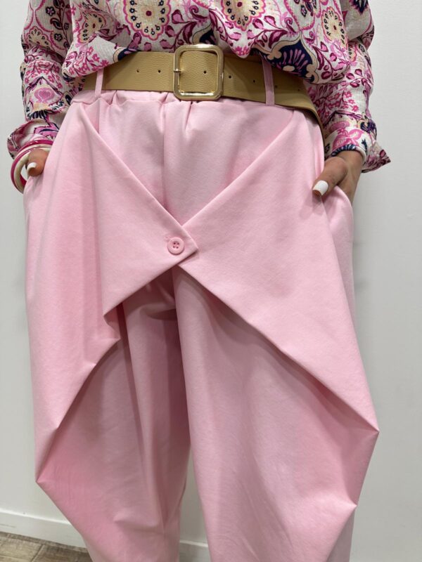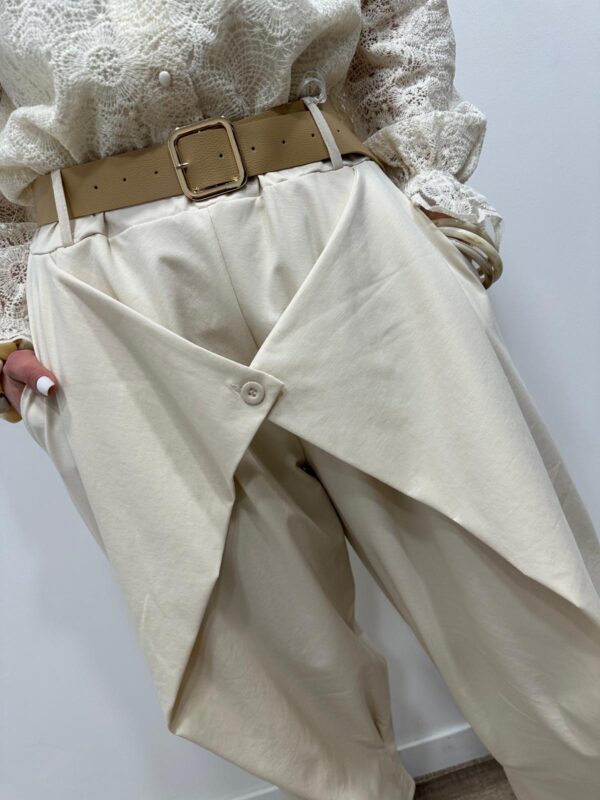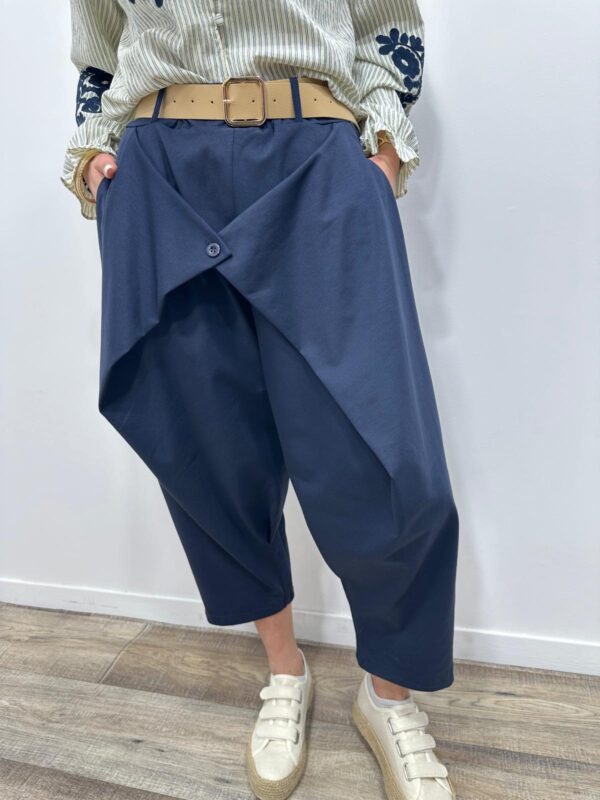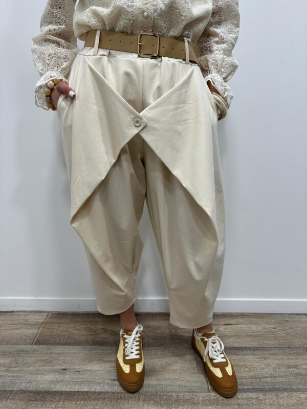 Craquez pour ce pantalon à l’allure moderne et audacieuse, pensé pour allier confort et style. Son jeu de plis croisés sur le devant apporte une touche originale et structurée, tout en offrant une belle liberté de mouvement. Sa coupe ample et fluide assure un tombé élégant, parfait pour une silhouette décontractée mais soignée. Facile à porter au quotidien, il se prête aussi bien à un look casual avec des baskets qu’à une tenue plus chic avec des accessoires raffinés.