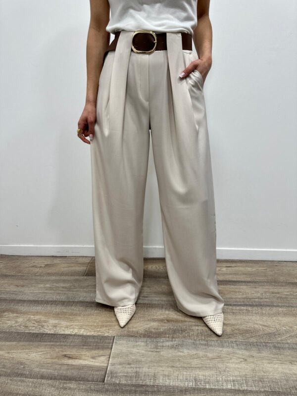 Laissez-vous séduire par ce pantalon élégant à la coupe large qui allie confort et sophistication. Sa taille haute structurée et ses plis à l’avant subliment la silhouette tout en offrant un tombé fluide et raffiné. Sa ceinture intégrée à nouer apporte une touche moderne et féminine qui souligne délicatement la taille. Parfait pour un look chic au quotidien ou pour une tenue plus habillée.
