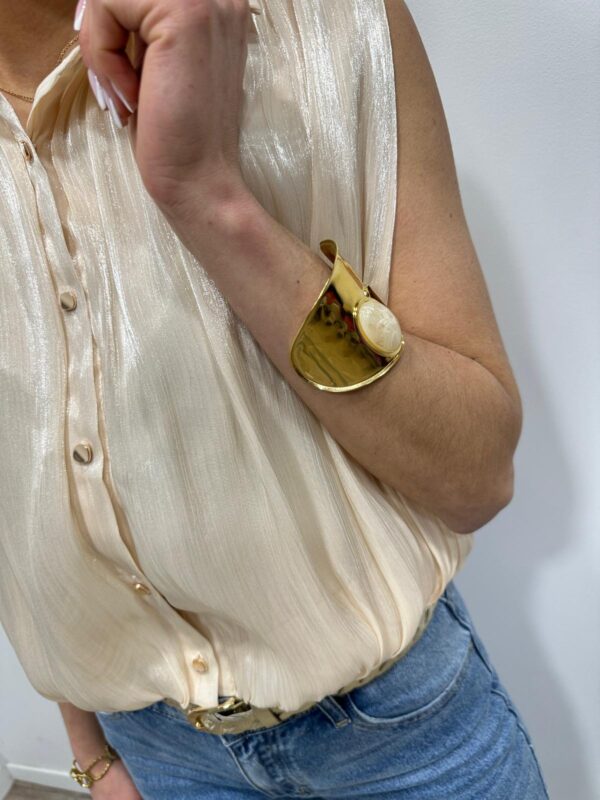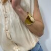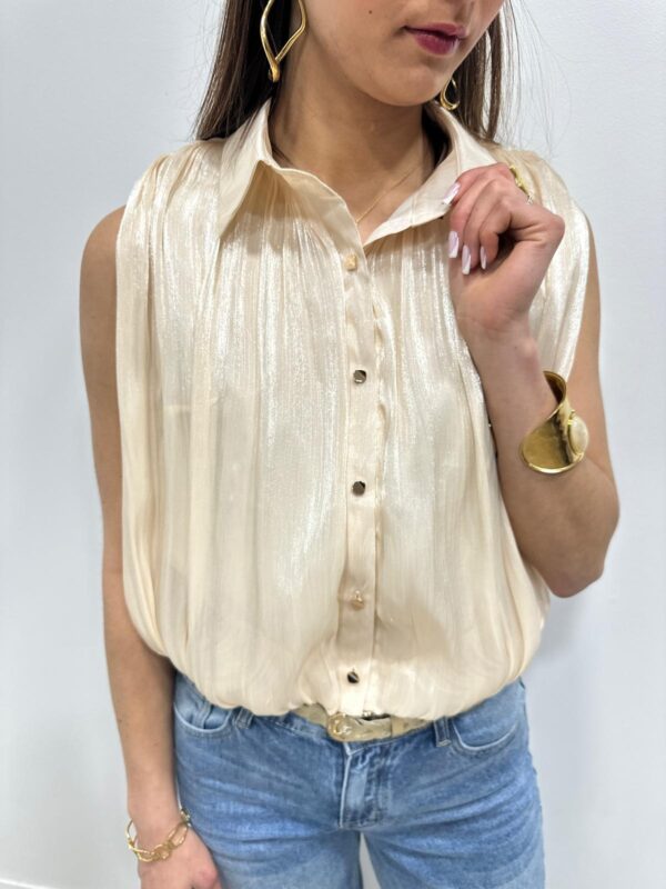 Chic et lumineuse, cette chemise sans manches apporte une touche d’élégance à toutes vos tenues. Son tissu légèrement satiné capte subtilement la lumière tandis que ses boutons dorés ajoutent une finition raffinée. Facile à porter au quotidien comme pour une occasion plus habillée, pour un look féminin et élégant ✨