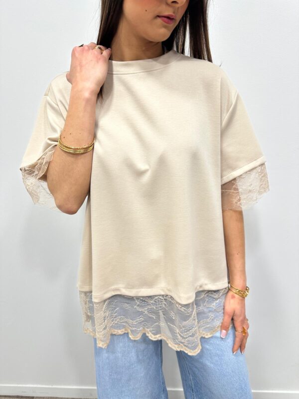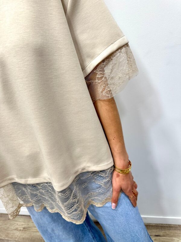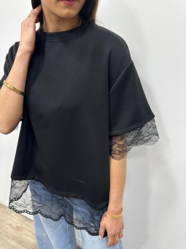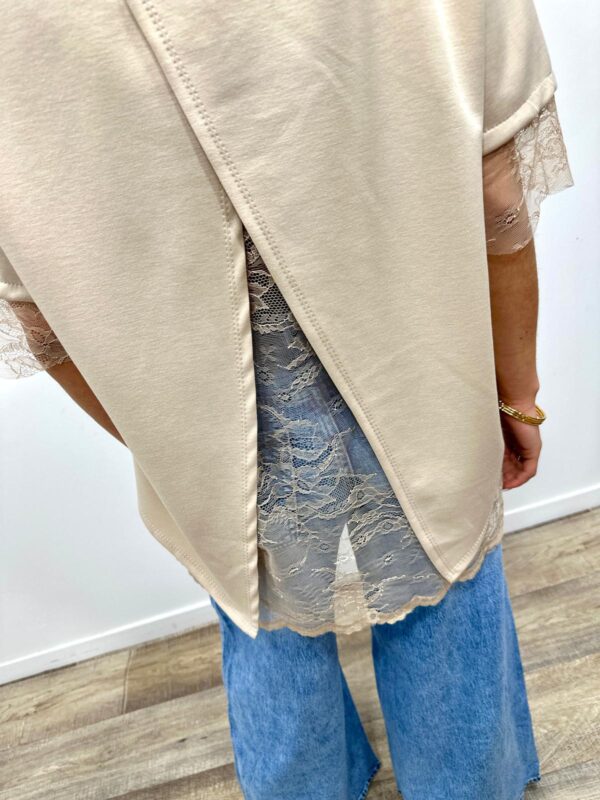 • Finitions en dentelle aux manches et au bas du top