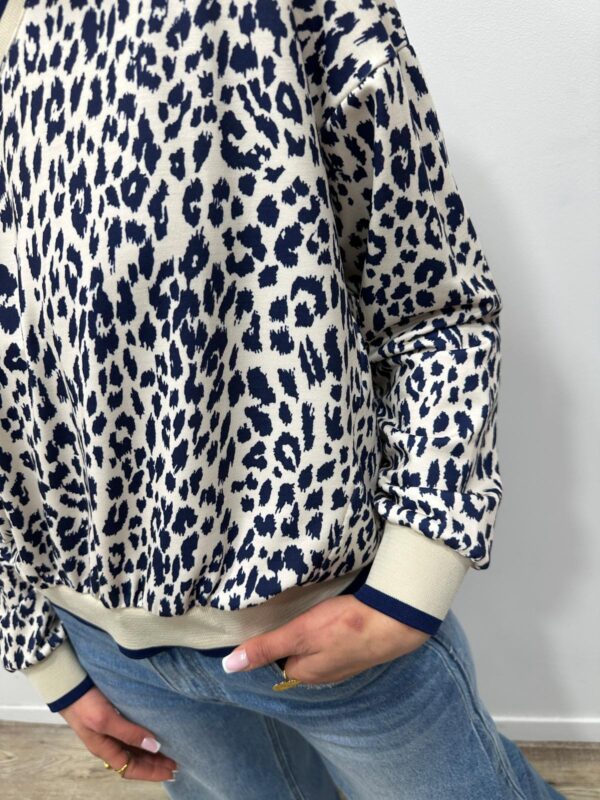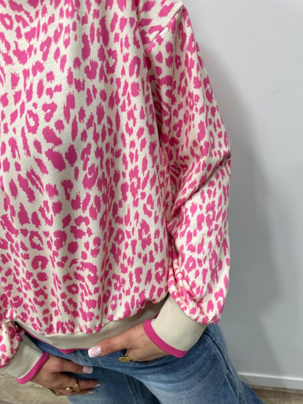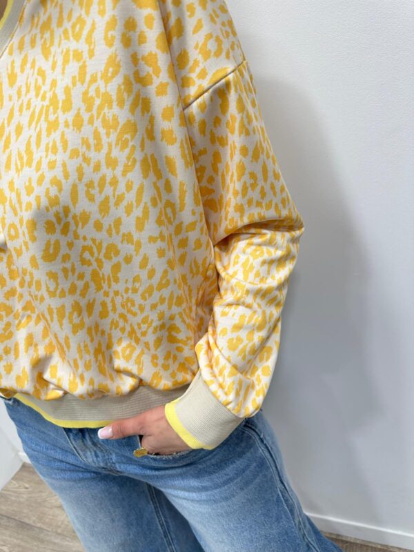 Adoptez un style tendance avec ce pull au motif léopard revisité. Son imprimé chic et moderne apporte du caractère à votre tenue tout en restant facile à porter au quotidien. Sa coupe légèrement ample et ses finitions contrastées au col, aux poignets et à la taille lui donnent une touche élégante et contemporaine.