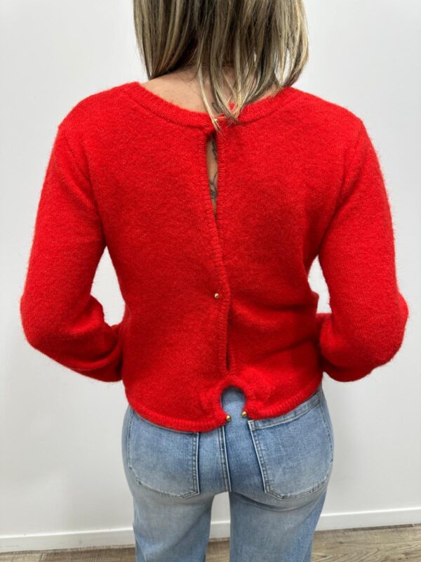 Impossible de passer inaperçue avec ce sublime pull rouge ❤️ Sa maille ultra douce enveloppe la silhouette avec confort tout en apportant une touche lumineuse et féminine à votre tenue. On adore son détail délicat au dos : une ouverture subtile avec finition bijou qui apporte une note chic et raffinée. Parfait avec un jean pour un look casual élégant ou plus habillé selon vos envies ✨