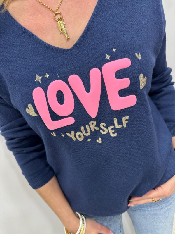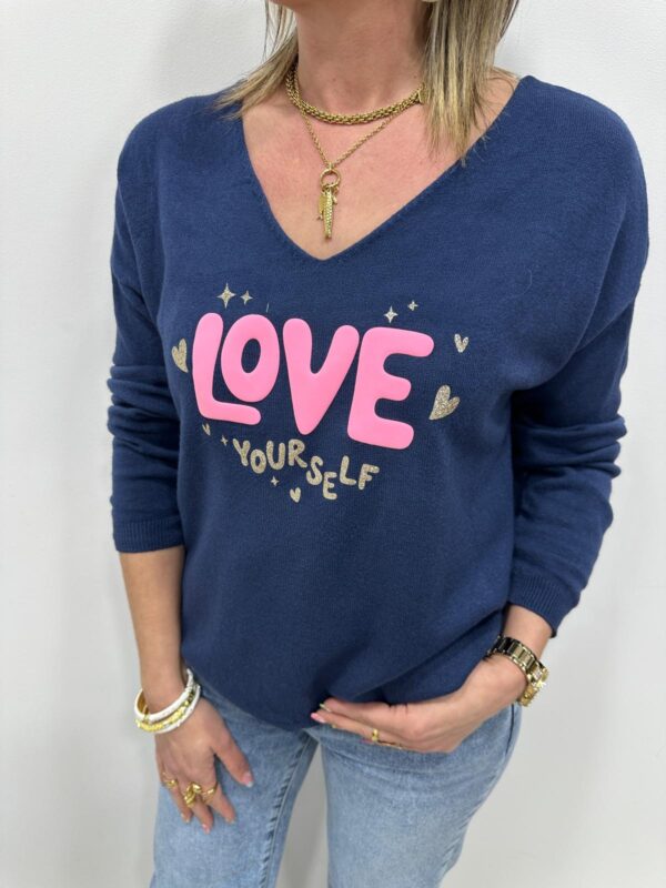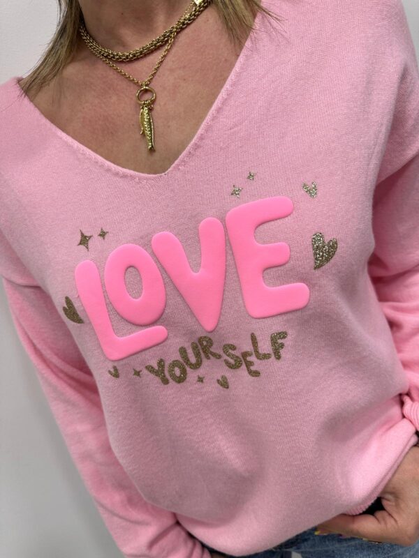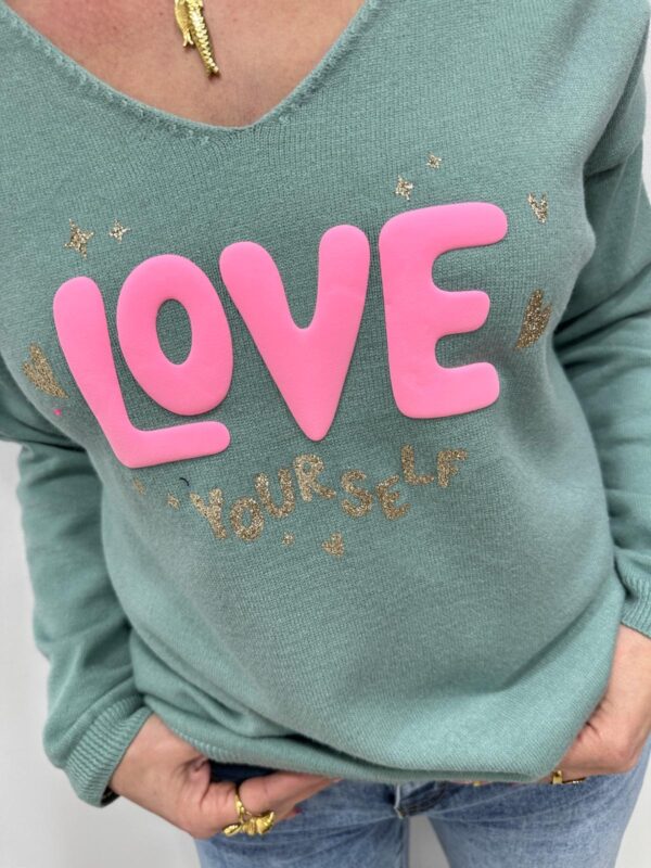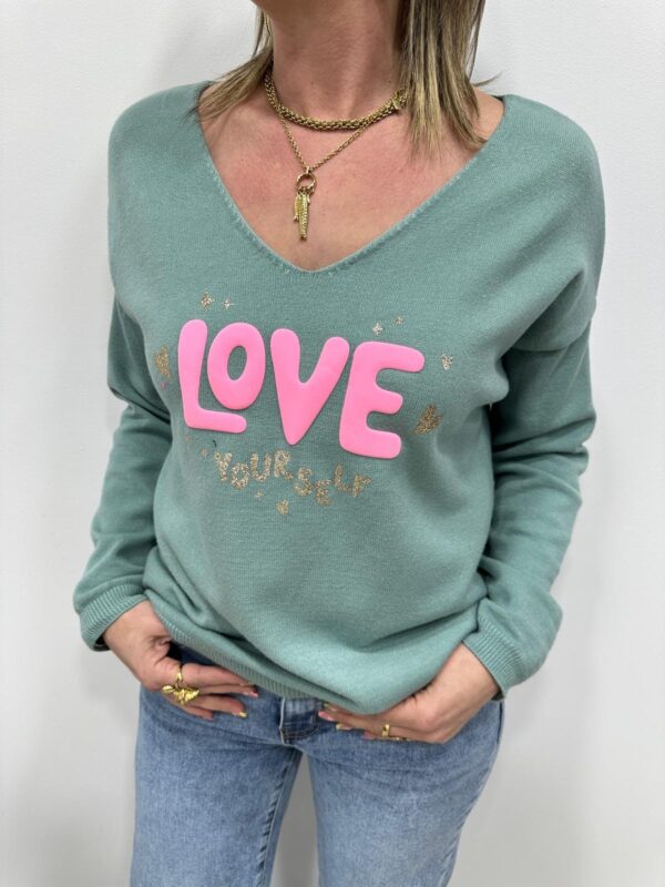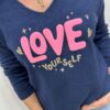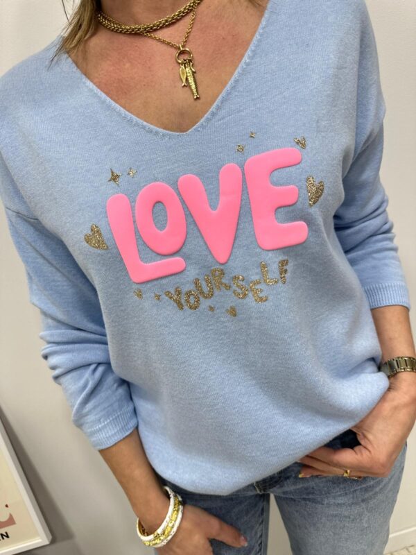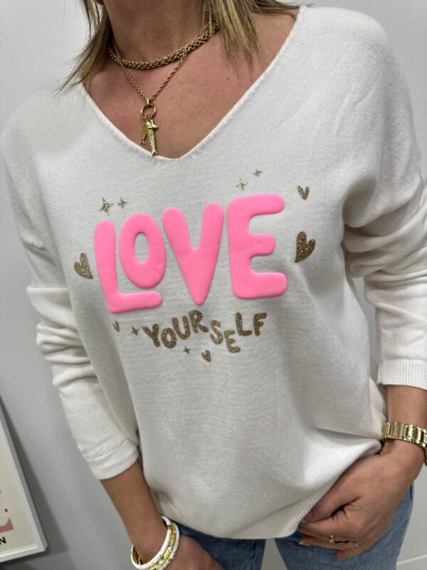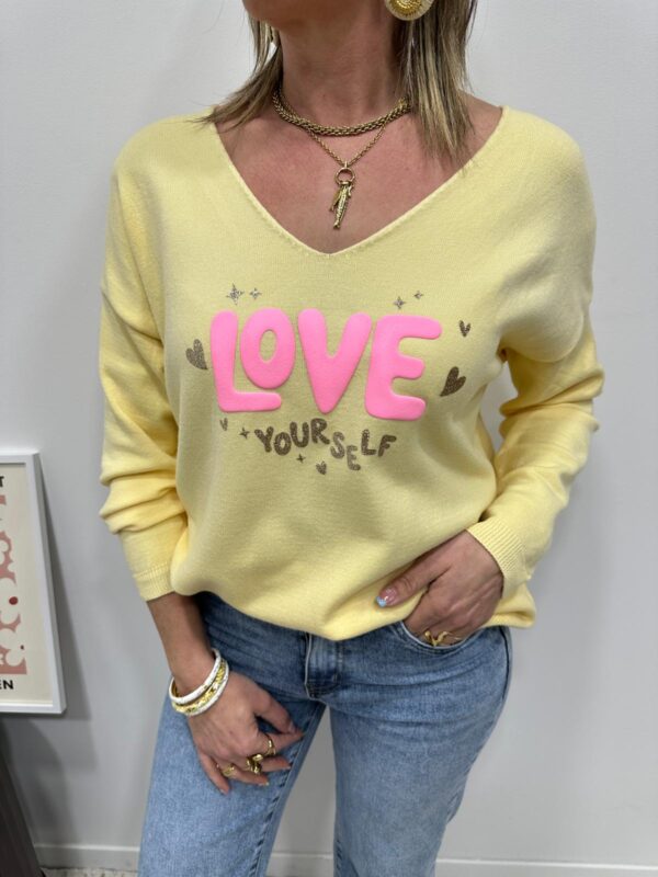 Le pull coup de cœur plein de good vibes 💕 Avec son message “LOVE YOURSELF” et ses détails dorés, il apporte une touche fun et positive à votre look. Confortable et facile à porter pour une tenue décontractée et tendance ✨