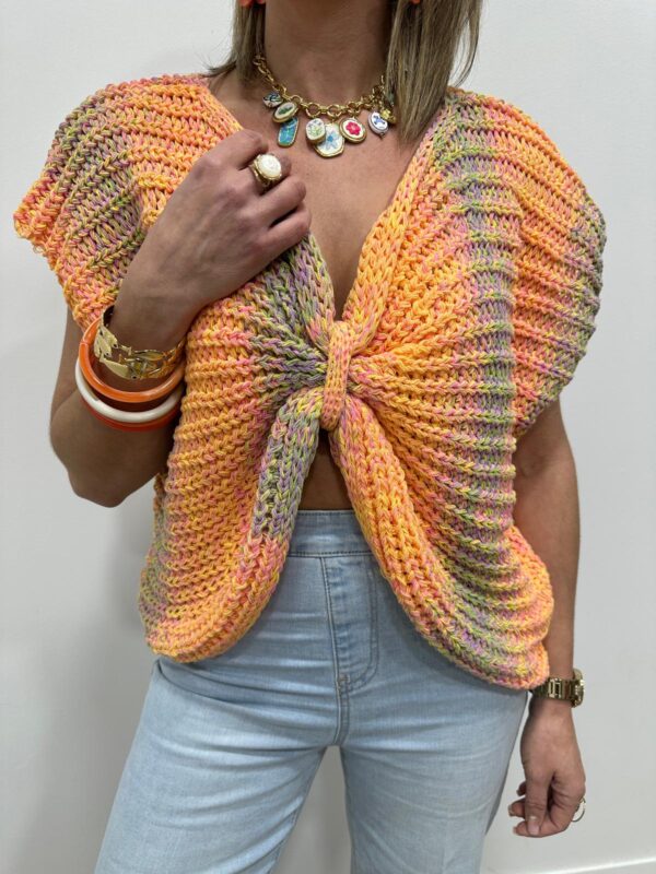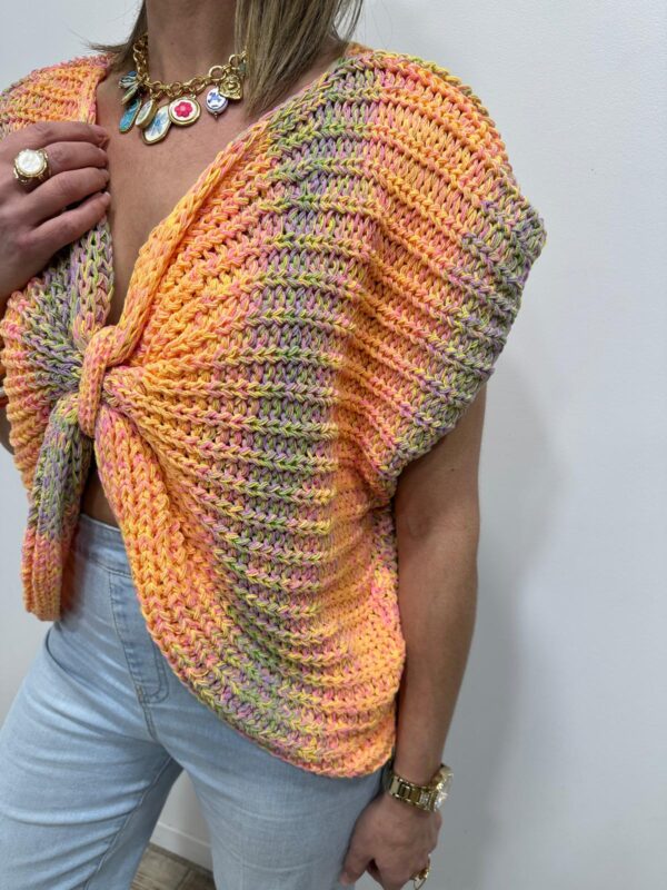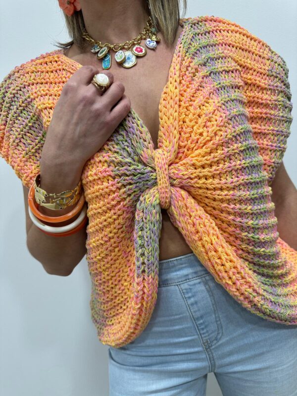 Craquez pour ce pull en maille multicolore au charme irrésistible, une pièce originale qui apporte instantanément une touche de fraîcheur et de modernité à votre tenue. Son joli jeu de couleurs et sa maille texturée en font un modèle aussi confortable que tendance.On adore son détail nœud, qui fait toute la différence et offre une vraie polyvalence :