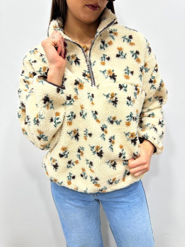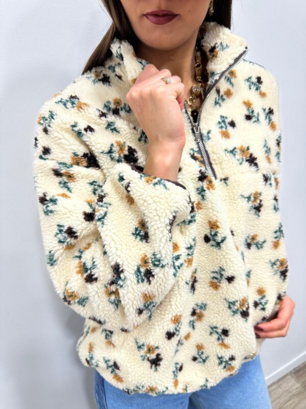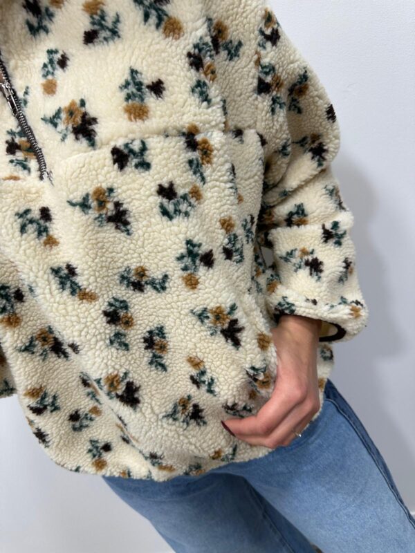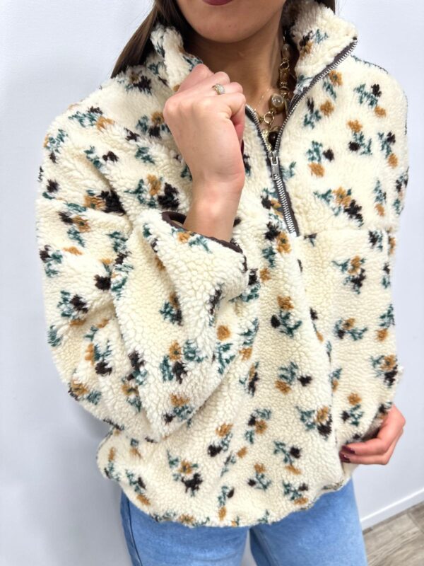 Découvrez notre pull polaire à motifs fleuris, une pièce douce, chaude et ultra cosy, parfaite pour affronter les journées fraîches avec style. Sa matière effet sherpa offre un confort incomparable, tandis que son imprimé fleuri apporte une touche bohème et tendance. Avec son zip sur le col et sa coupe confortable, c’est le pull doudou idéal pour l’hiver.