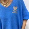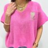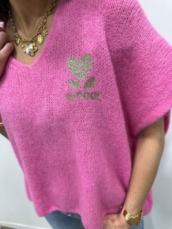 Le pull “Amour” tout doux et ultra féminin ✨ On craque pour sa maille légère et son joli rose lumineux qui donne bonne mine instantanément. Le détail cœur doré avec l’inscription “amour” apporte une touche chic et tendance, parfaite pour un look casual mais stylé. Facile à associer, il deviendra vite un indispensable de votre dressing 💕