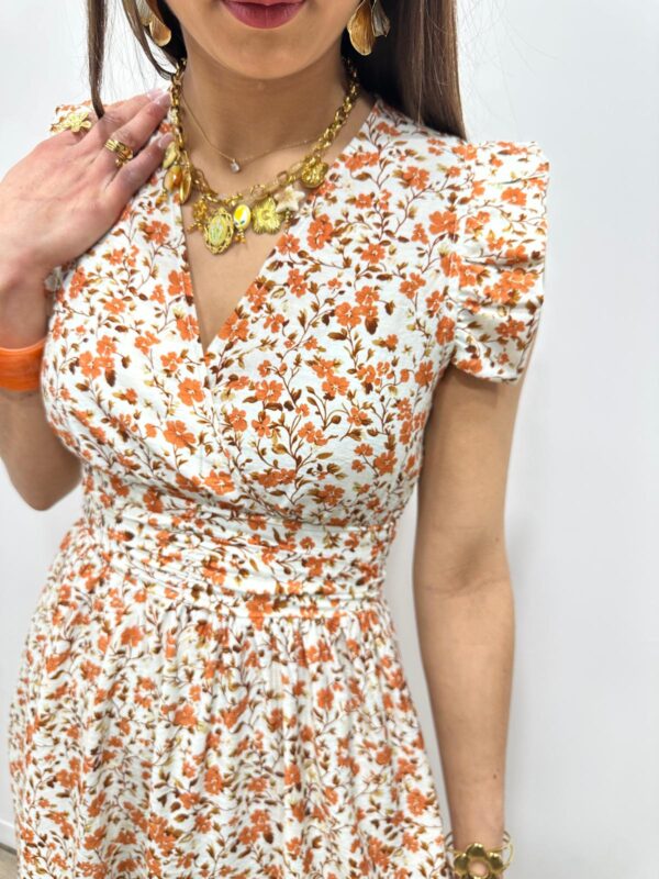 Une robe courte pleine de douceur et de féminité 🌸 Son imprimé fleuri aux nuances chaudes apporte une touche romantique et lumineuse, parfaite pour la saison. Sa coupe fluide avec taille marquée sublime la silhouette tandis que ses manches légèrement structurées ajoutent du caractère ✨Facile à porter au quotidien comme pour une occasion, c’est la pièce coup de cœur du dressing 🤍