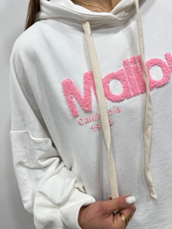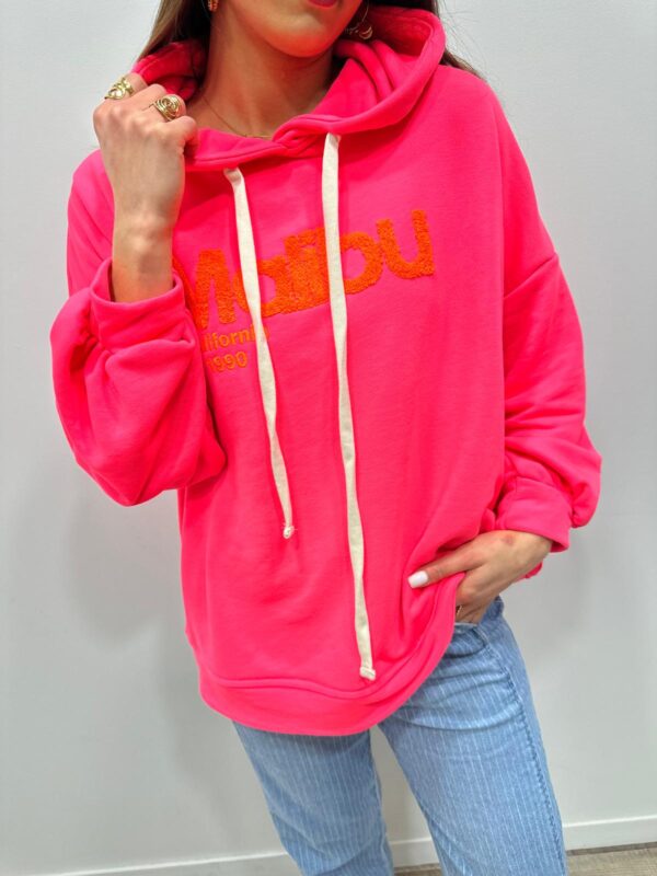 Optez pour un look casual et tendance avec ce sweat à capuche ultra confortable. Son inscription “Malibu California 1990” en relief effet bouclette apporte une touche fun et moderne qui dynamise la tenue. Avec sa coupe ample et ses finitions soignées idéal pour un style décontracté chic au quotidien.