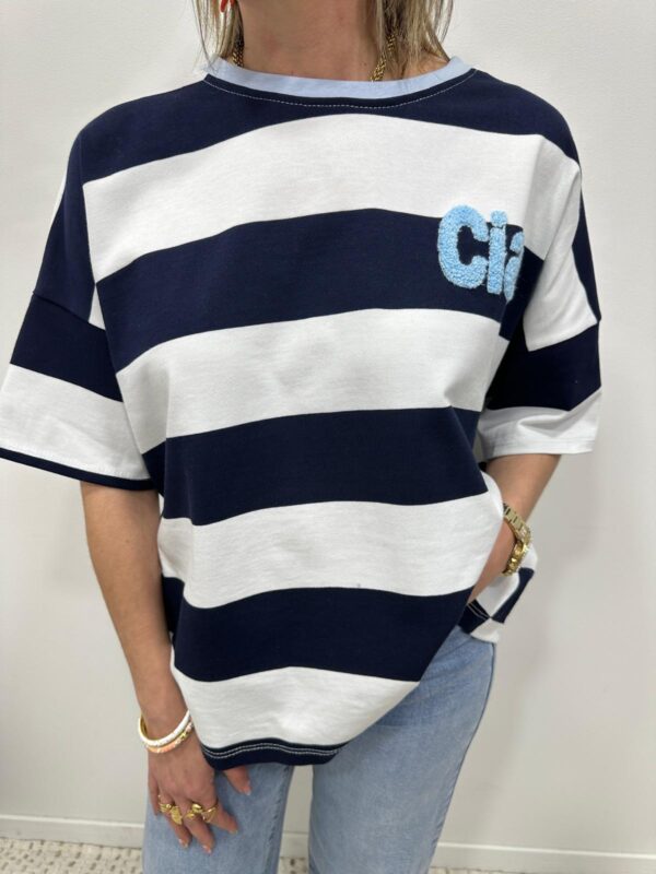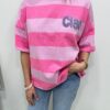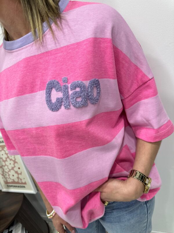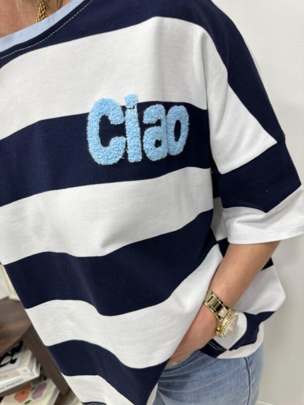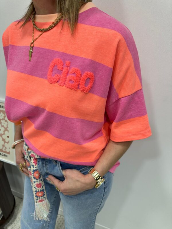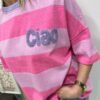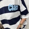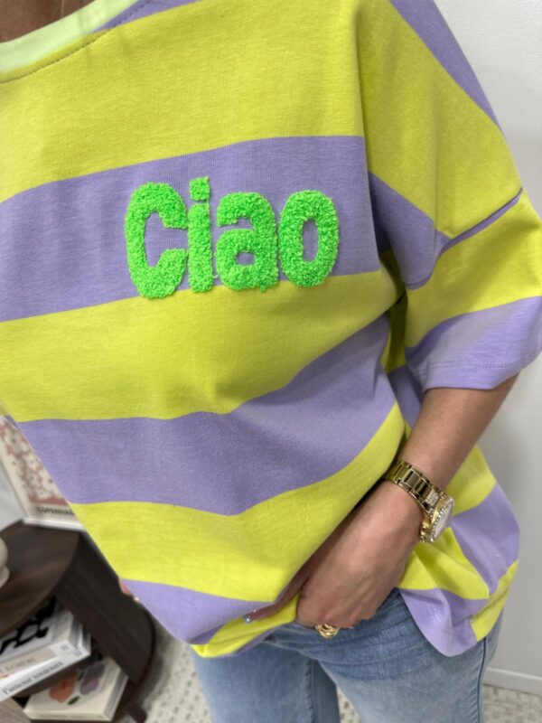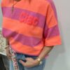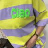 Le t-shirt coloré qui booste instantanément votre look 🌈✨ Avec ses larges rayures vibrantes et son détail « Ciao » en relief, il apporte une touche fun, tendance et pleine de bonne humeur à vos tenues. Sa coupe loose et son coton doux en font une pièce ultra confortable à porter au quotidien, parfaite avec un jean ou un short pour un style casual et stylé 💕