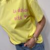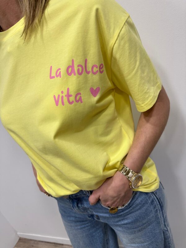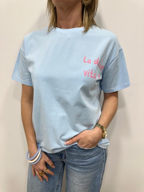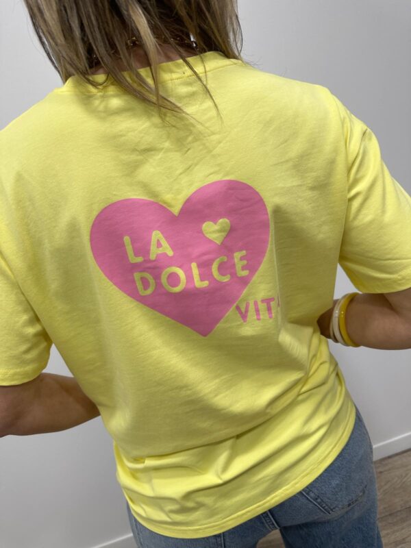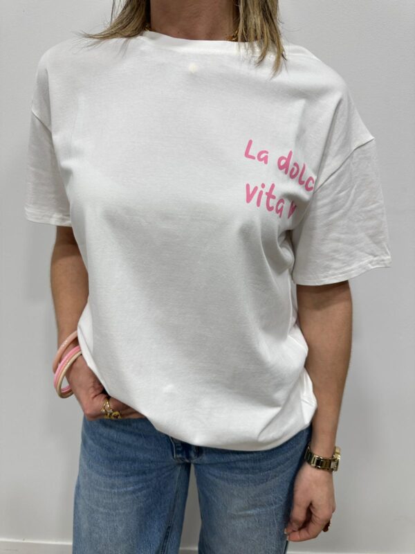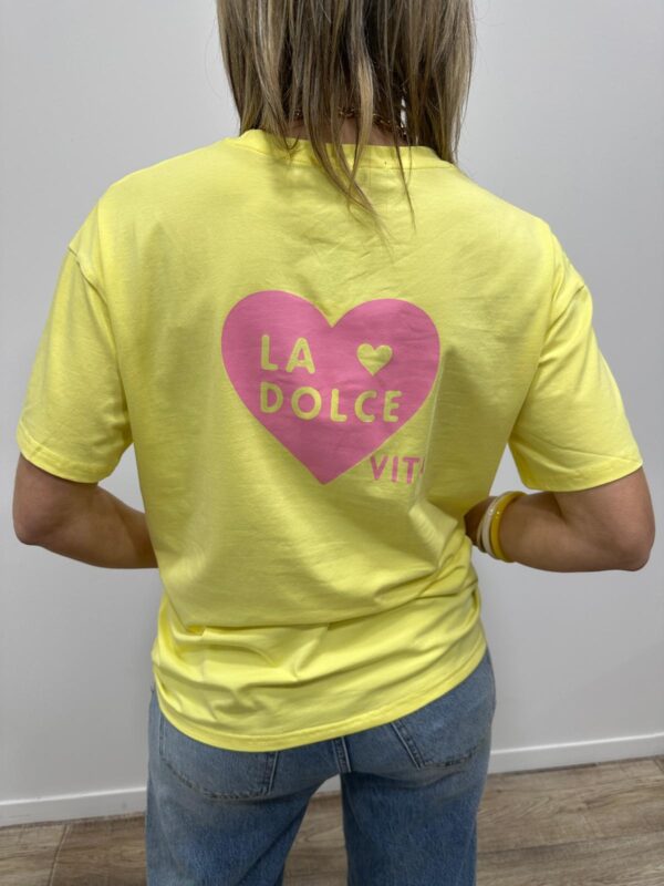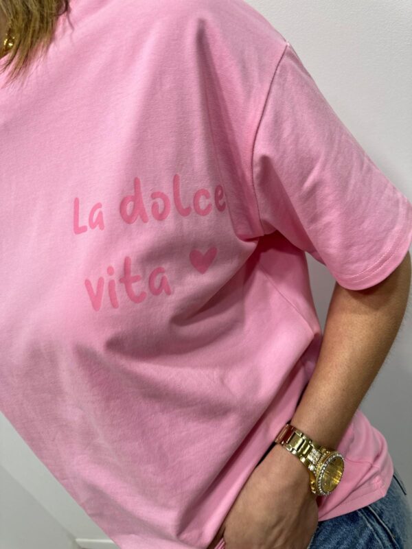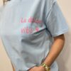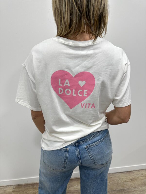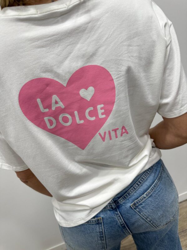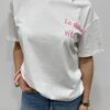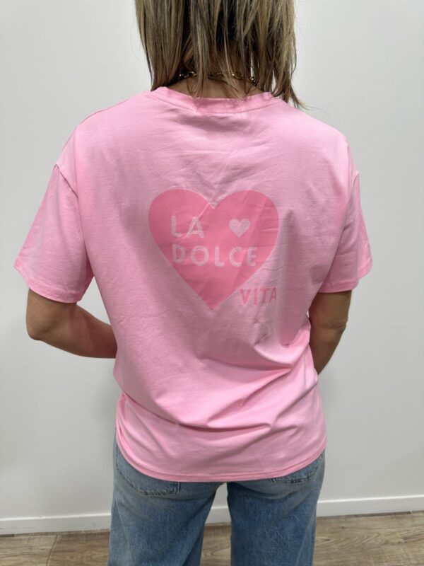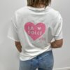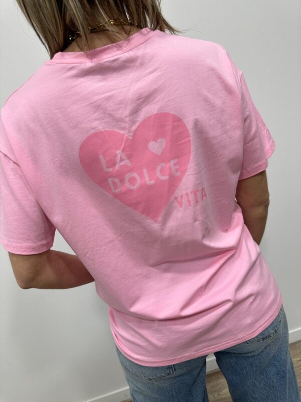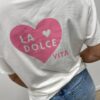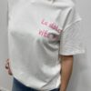 Le tee-shirt good vibes 🤍💗 Craquez pour ce tee-shirt ultra tendance, parfait pour afficher votre amour de La Dolce Vita 🌸 On adore son imprimé rose plein de pep’s : discret sur le devant et maxi cœur au dos pour un effet wahou garanti ✨ Facile à porter, c’est la pièce idéale pour un look casual et féminin.