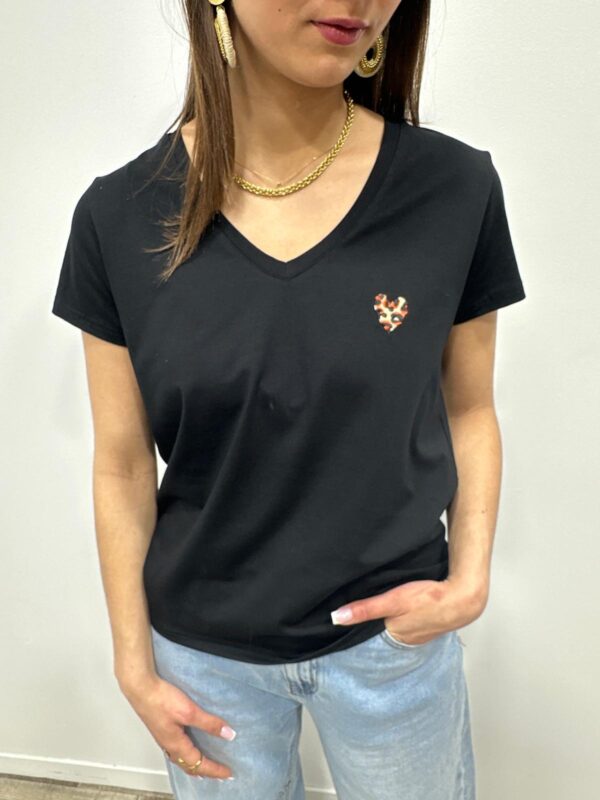 Ce t-shirt est l’indispensable parfait pour un look casual avec une touche tendance. Sa coupe simple et féminine est sublimée par un joli décolleté en V et un petit cœur léopard brodé qui apporte une note originale et stylée. Facile à associer il deviendra rapidement une pièce incontournable de votre dressing. Un basique revisité, à porter sans modération au quotidien ✨