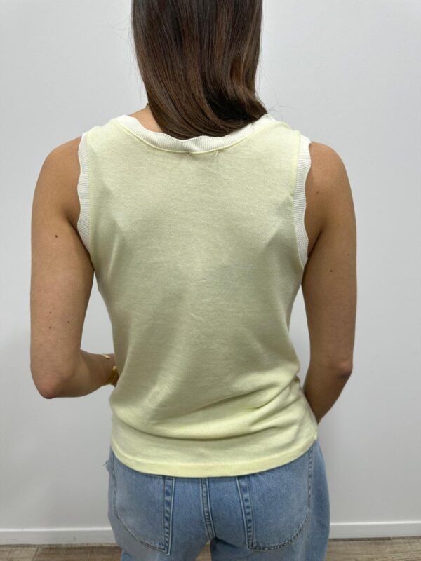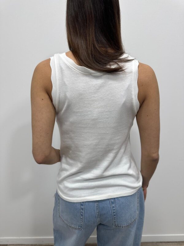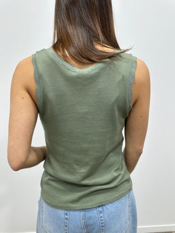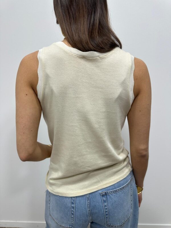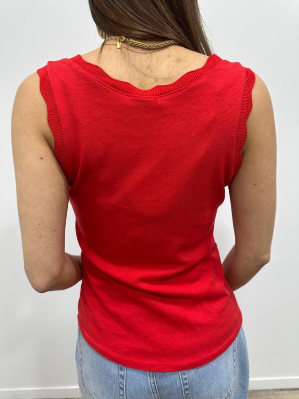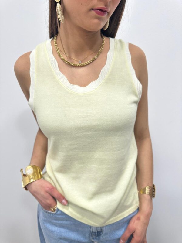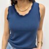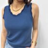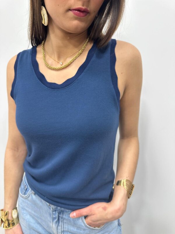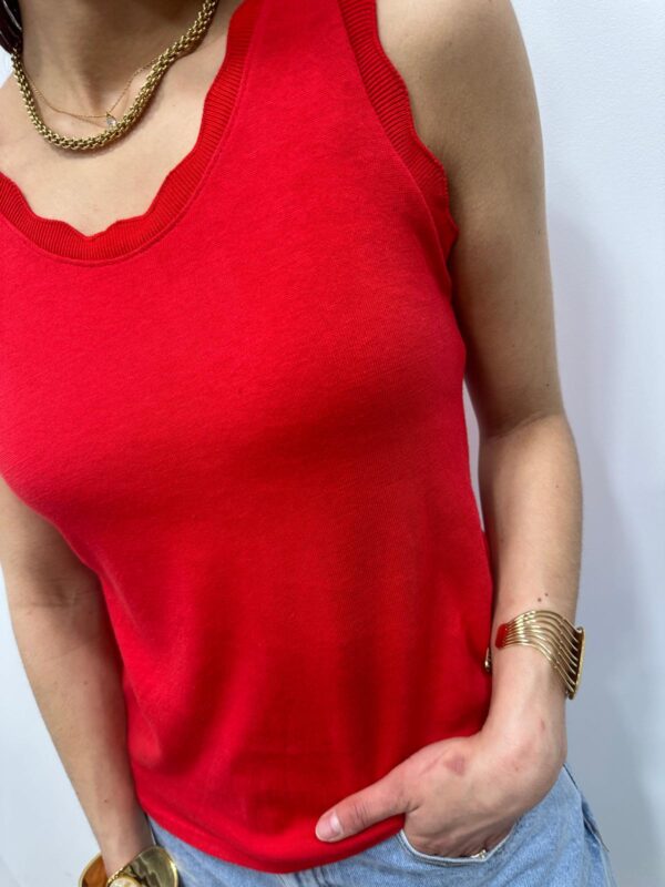 Le basique revisité qui fait toute la différence. Ce top sans manches séduit par sa coupe simple et élégante, sublimée par une encolure délicatement festonnée. Un indispensable du dressing, facile à associer pour un look chic et intemporel. Sa maille douce et confortable en fait une pièce parfaite à porter seule ou sous une veste.