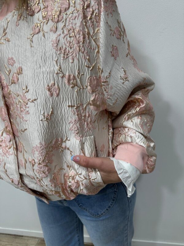 Craquez pour cette sublime veste au motif floral délicatement brodé, qui apporte instantanément une touche chic et romantique à votre tenue. Son tissu légèrement texturé et ses détails roses poudrés lui donnent un style élégant et féminin. Facile à porter pour une allure plus habillée, cette pièce deviendra rapidement un coup de cœur du dressing 🌸