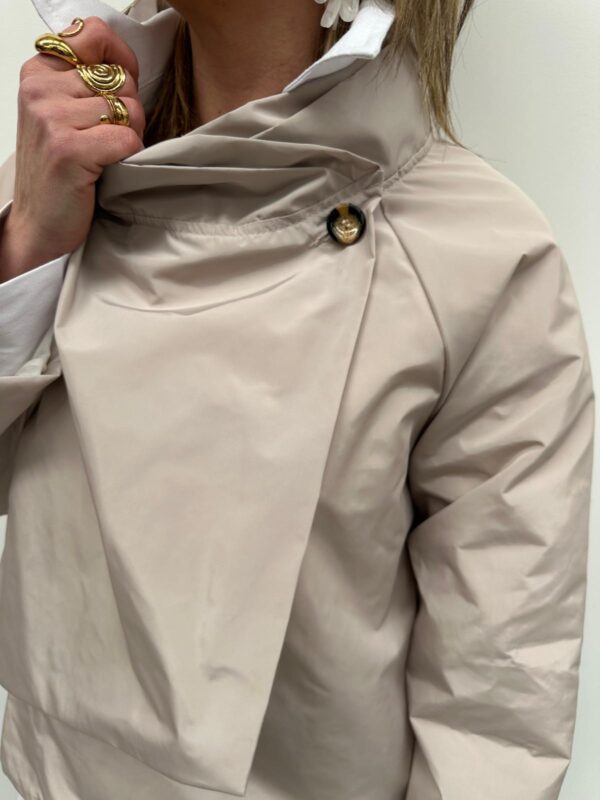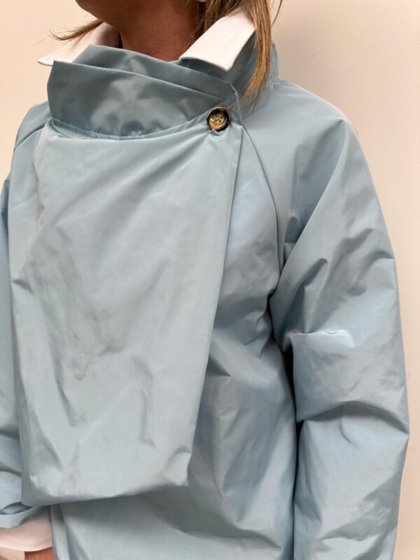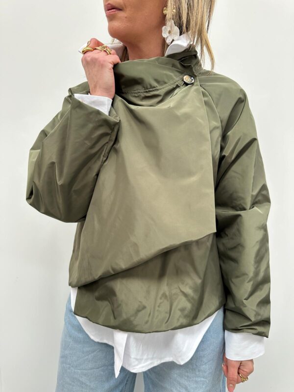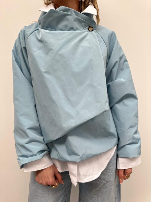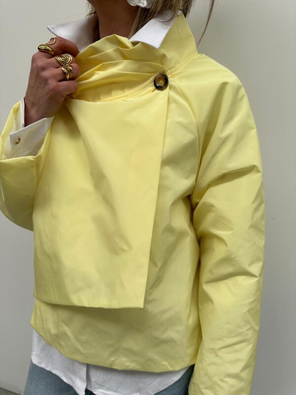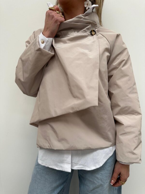 Optez pour une allure moderne et élégante avec cette veste au design structuré. Son col montant asymétrique et sa coupe épurée lui donnent un style chic et contemporain. Légère et confortable, elle est parfaite pour la mi-saison et apporte instantanément une touche sophistiquée à vos tenues.
