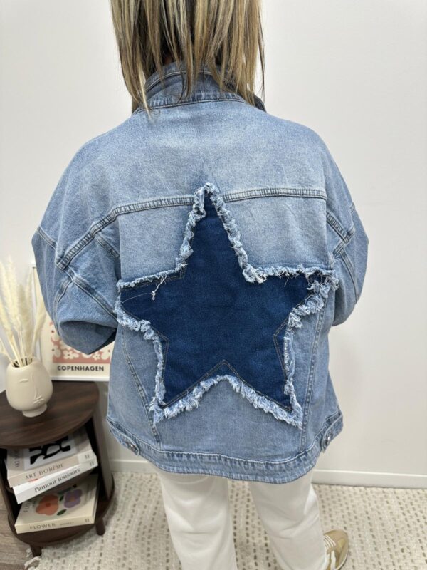 La veste en jean revisitée qu’on adore ⭐ Avec son étoile en denim contrasté au dos, elle apporte une touche originale et tendance à tous vos looks. Parfaite pour compléter une tenue casual ou féminine, elle se porte facilement au quotidien pour un style moderne et affirmé 💙