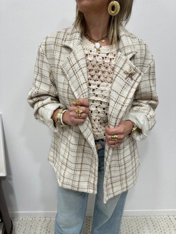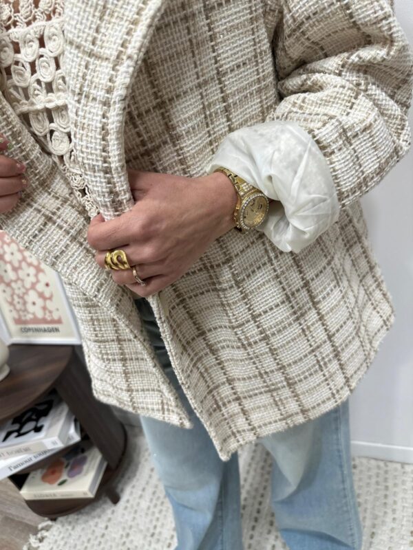 La veste parfaite pour une allure chic et intemporelle 🤍 Avec son effet tweed et sa coupe structurée, elle apporte instantanément une touche élégante à toutes vos tenues. On craque pour son détail broche amovible qui sublime le look et permet de varier les styles selon vos envies ✨